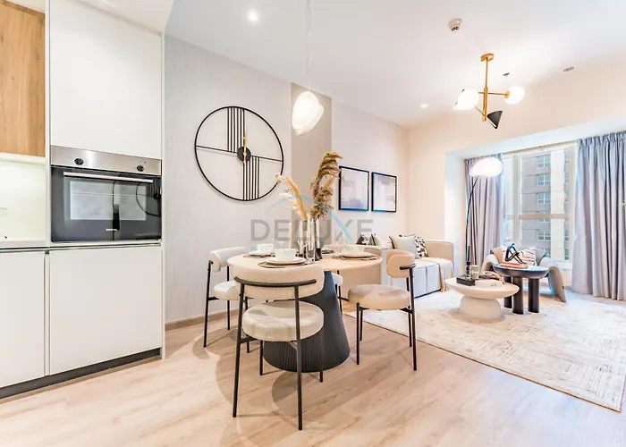 Het bevindt zich binnen 5 minuten wandelafstand van Q43, tevens is er een metrostation, Nakheel, op 850 meter afstand. De Palmen eilanden bevindt zich ook op afstand van 3 km van het appartement.